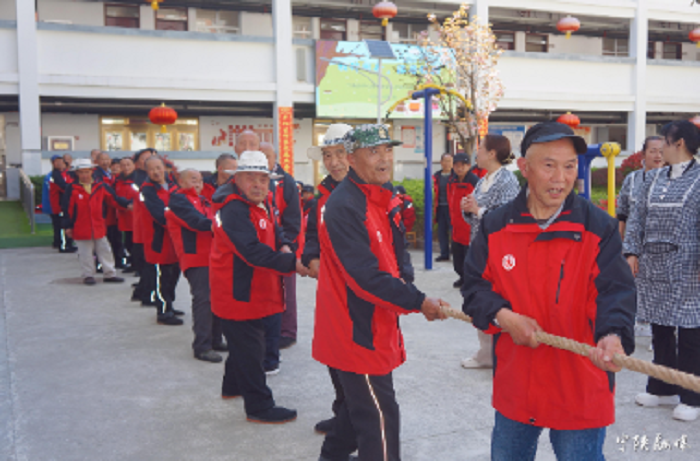 除了參觀,敬老院還精心組織了一系列娛樂活動(dòng)。其中,拔河比賽尤為引人注目。參賽者們熱情高漲,現(xiàn)場氣氛熱烈,歡笑聲此起彼伏。這些活動(dòng)不僅豐富了老人們的日常生活,也增進(jìn)了參觀者與老人們之間的情感交流。
