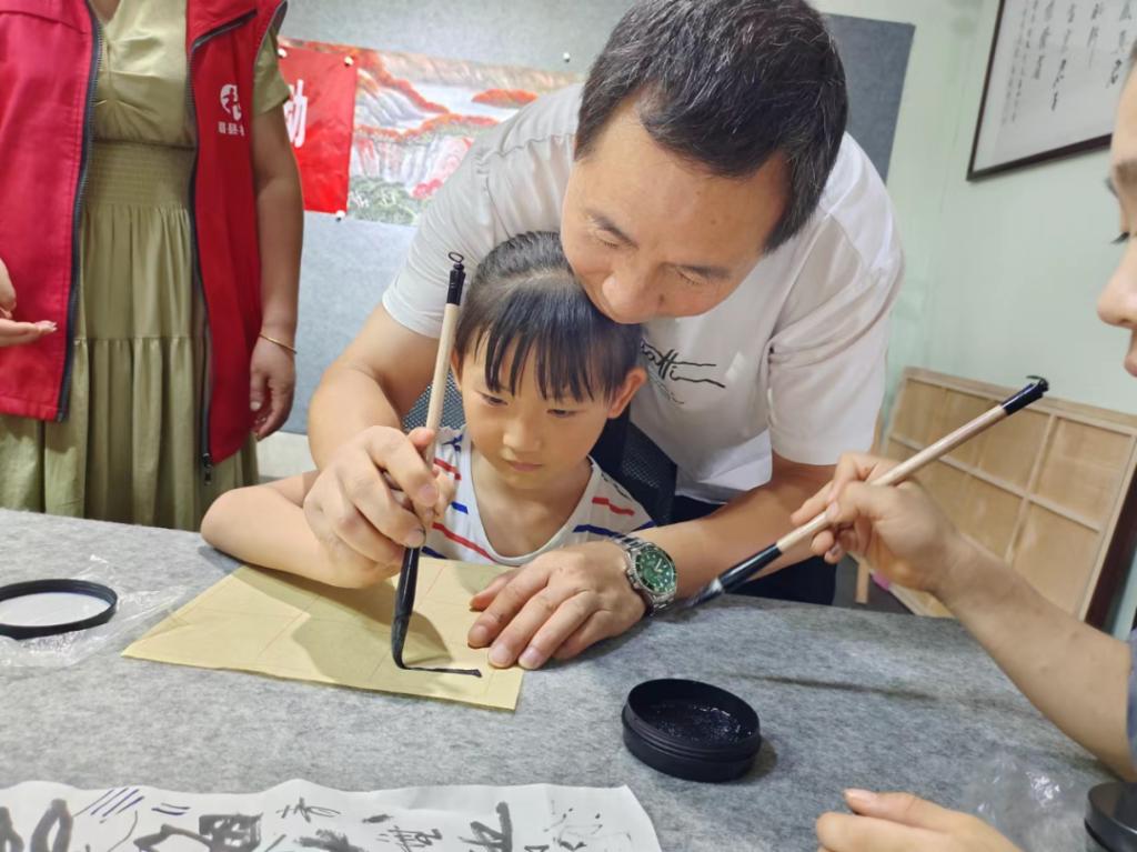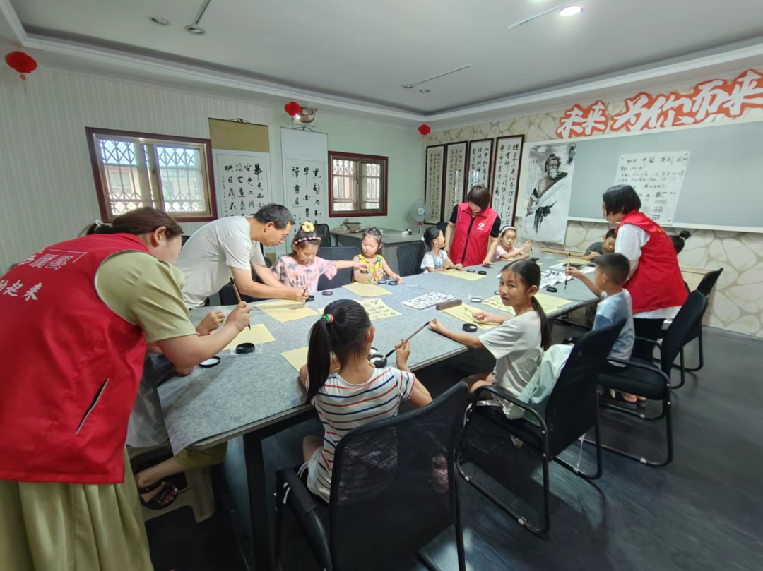 活動現(xiàn)場,為了讓孩子們更好地體驗書畫創(chuàng)作的樂趣,團(tuán)隊精心準(zhǔn)備了毛筆、宣紙、墨盒等學(xué)習(xí)用品。在簡短的開場白后,教學(xué)老師耐心地向孩子們展示了如何正確握筆,如何調(diào)整姿勢,以及如何控制筆觸的輕重緩急。參與活動的兒童認(rèn)真傾聽,小手緊握著毛筆,小心翼翼地蘸取墨汁,在宣紙上緩緩落筆。剛開始時,他們的字跡稍顯笨拙,但在老師的耐心指導(dǎo)下,逐漸找到了感覺,筆下的線條也變得越來越流暢自然。愛心志愿者們在旁協(xié)助,為孩子們提供必要的幫助和支持,鼓勵孩子們大膽嘗試、勇于創(chuàng)新。