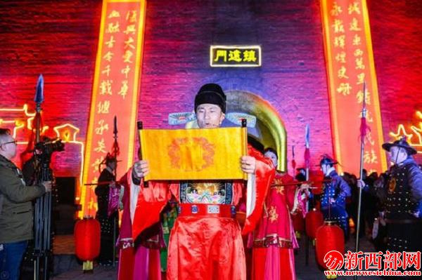 傍晚時分,迎賓儀式開始后,南門甕城鑼鼓喧天,號聲響起,伴隨著“開城迎賓”的聲音,城門緩緩開啟,游客市民紛紛入城欣賞老街夜景,感受濃郁年味。街上特色叫賣、民俗表演、民俗小劇場等各項活動上演的如火如荼,眾多游客拿起手機(jī)記錄著精彩畫面。美輪美奐的投影秀讓古城更加夢幻,老街的民俗演藝小劇場,處處彰顯著榆林豐富多彩的文化,讓人們又找回了久違的年味。