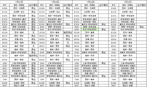 受降雨影響,7月27日至30日,榆林火車站多趟列車停運(yùn)。
