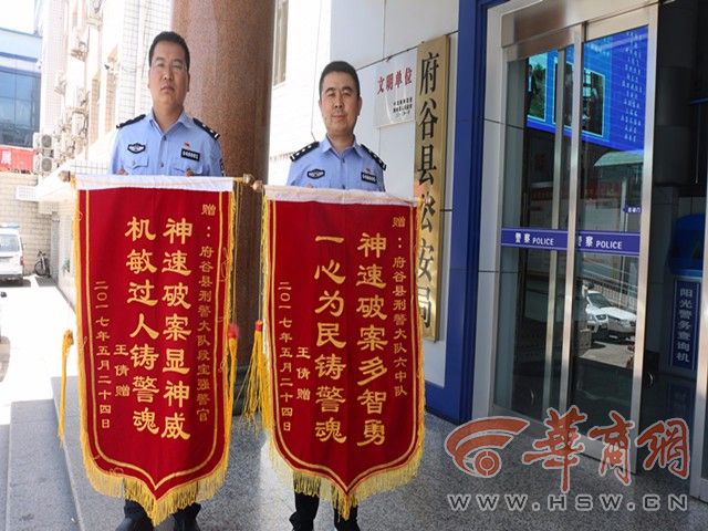 6月1日上午,王女士將印有“神速破案顯神威 機(jī)敏過(guò)人鑄警魂”、“神速破案多智勇 一心為民鑄警魂”兩面錦旗和一封感謝信送到府谷縣公安局刑警大隊(duì)民警手中,對(duì)民警積極受理成功阻截被騙錢款表示衷心感謝。