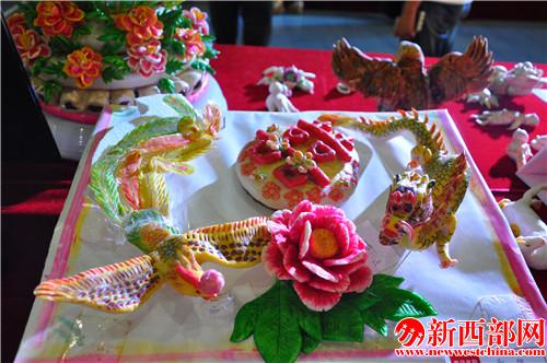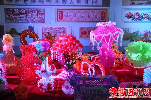 現(xiàn)場(chǎng),榆林各個(gè)縣區(qū)的手工藝優(yōu)秀作品陳列于展廳,剪紙、面捏、泥塑、石雕、刺繡等等,不斷獲得稱贊。其中一個(gè)串珠作品《鎮(zhèn)北臺(tái)》引起了來(lái)自高凌參觀者的關(guān)注。據(jù)作者王愛萍介紹,這個(gè)《鎮(zhèn)北臺(tái)》由3萬(wàn)顆串珠手工編制而成,重達(dá)20多斤,花費(fèi)了整整一個(gè)月。她稱若是時(shí)間足夠的話,會(huì)把榆林的“六樓”都做出來(lái)。