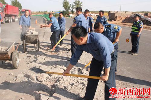 新西部網(wǎng)榆林訊(通訊員常金莉)5月19日下午,碾房峁超限站執(zhí)法人員發(fā)現(xiàn)下行車輛進(jìn)站檢測(cè)的水泥路段存在嚴(yán)重裂縫、斷裂現(xiàn)象,進(jìn)站檢測(cè)的車輛存在很大的安全隱患,該站及時(shí)組織人員對(duì)該路段進(jìn)行清除,保障車輛安全通行。后期將對(duì)該路段進(jìn)行修復(fù)。