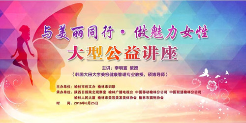 新西部網(wǎng)榆林訊 (見習(xí)記者 李佳奕)8月25日,由榆林市創(chuàng)文辦、榆林市婦聯(lián)主辦,陜西日報陜北觀察編輯室、榆林廣播電視臺等單位承辦的“與美麗同行·做魅力女性”大型公益講座在榆林首次開講。講座邀請了韓國大田大學(xué)美容健康管理專業(yè)教授、碩博導(dǎo)師李明宣為榆林女性講授美容美體養(yǎng)生保健知識。