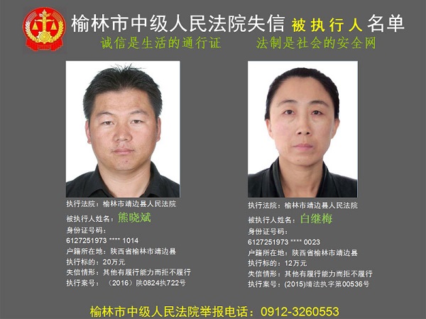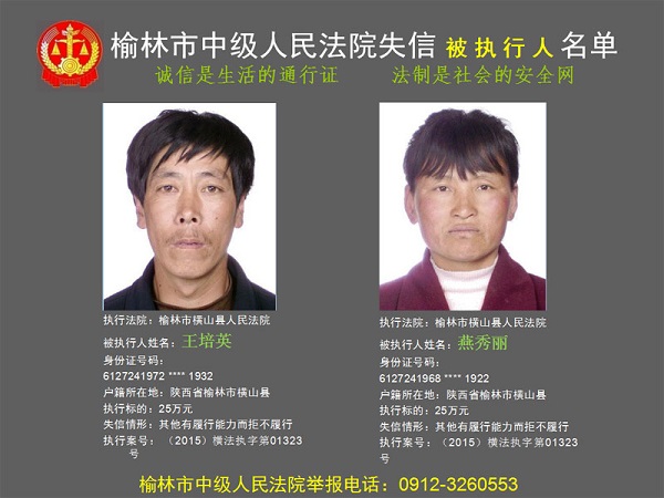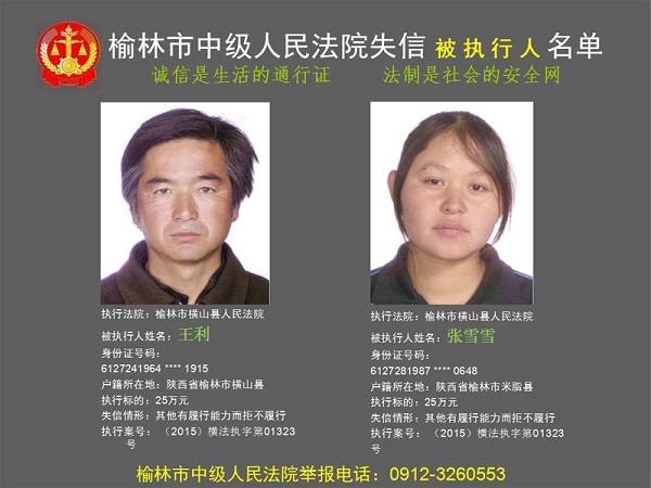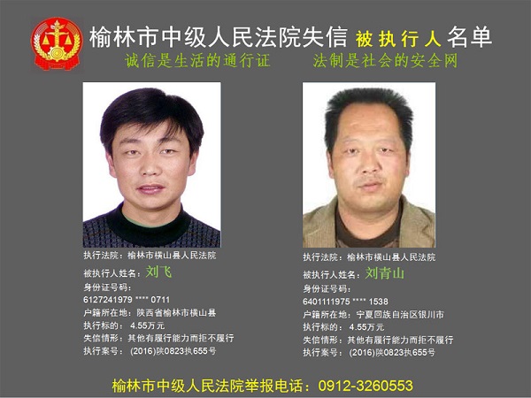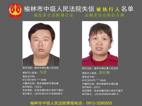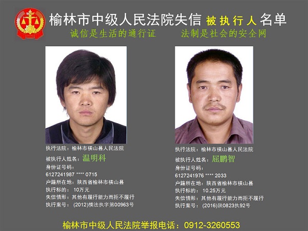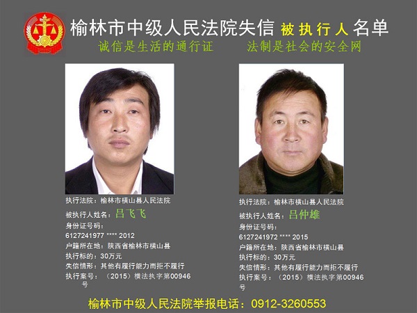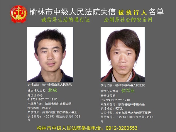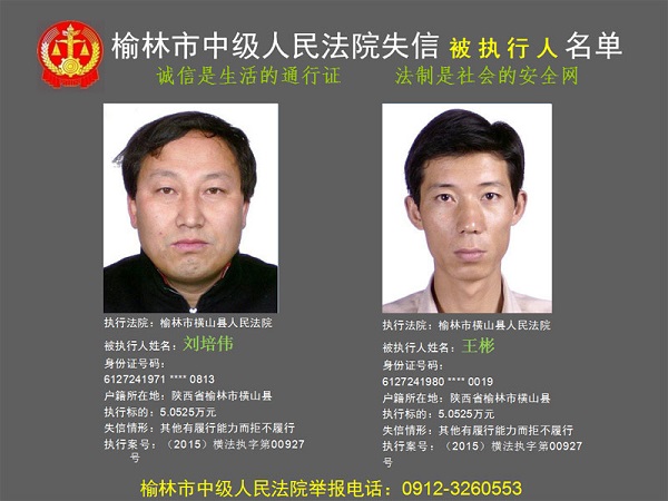 榆林市第六批失信被執(zhí)行人“黑名單”(四)80人