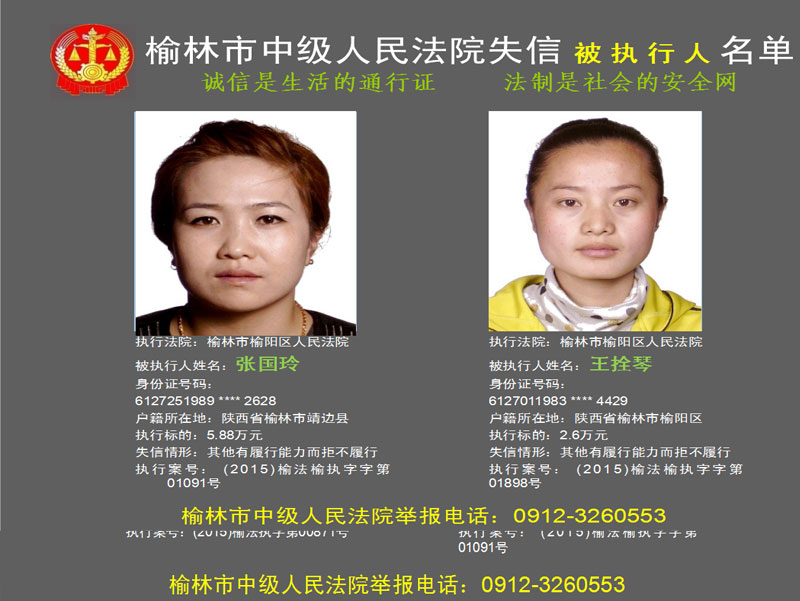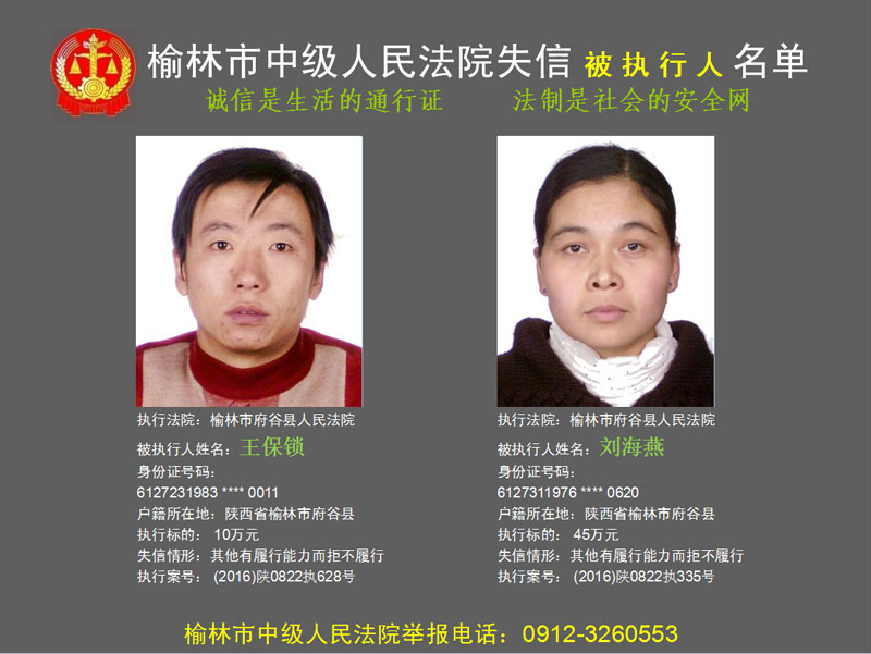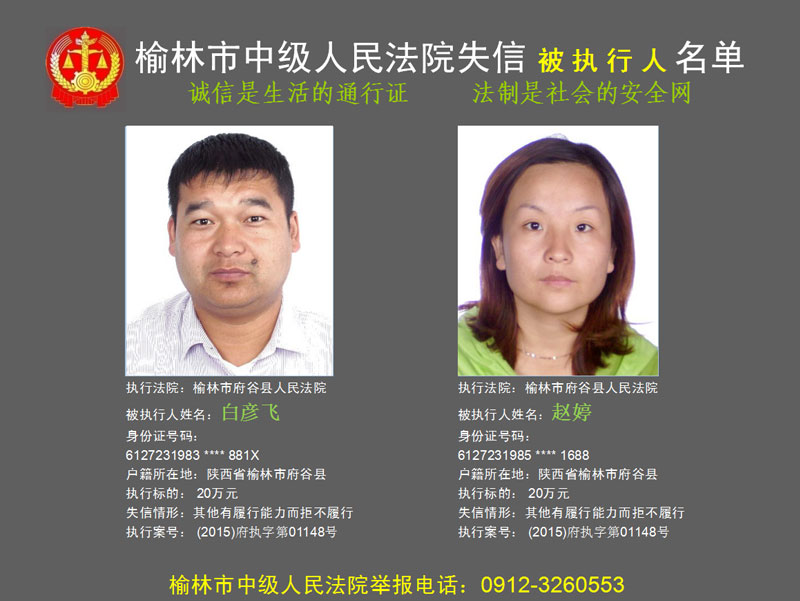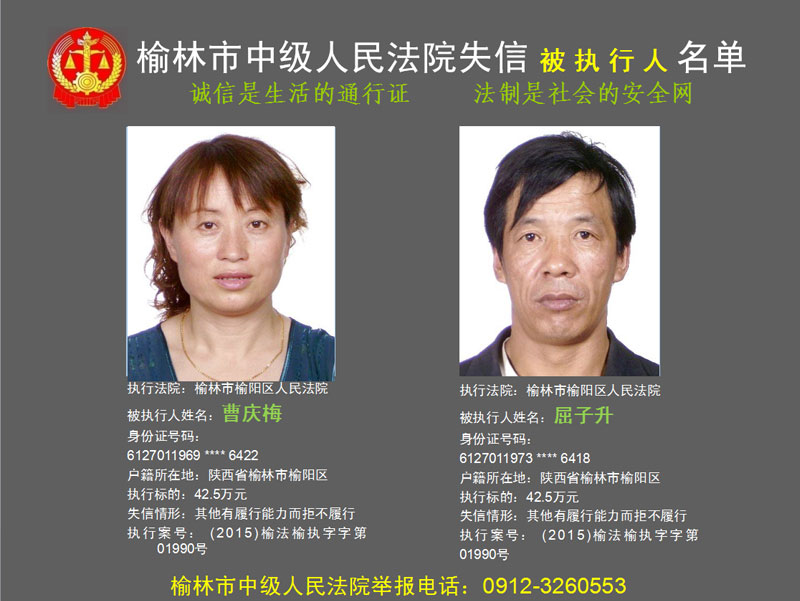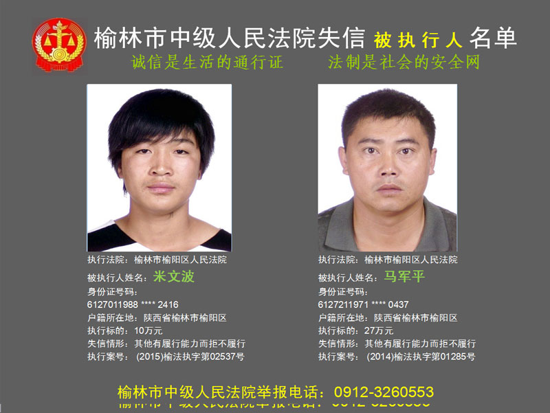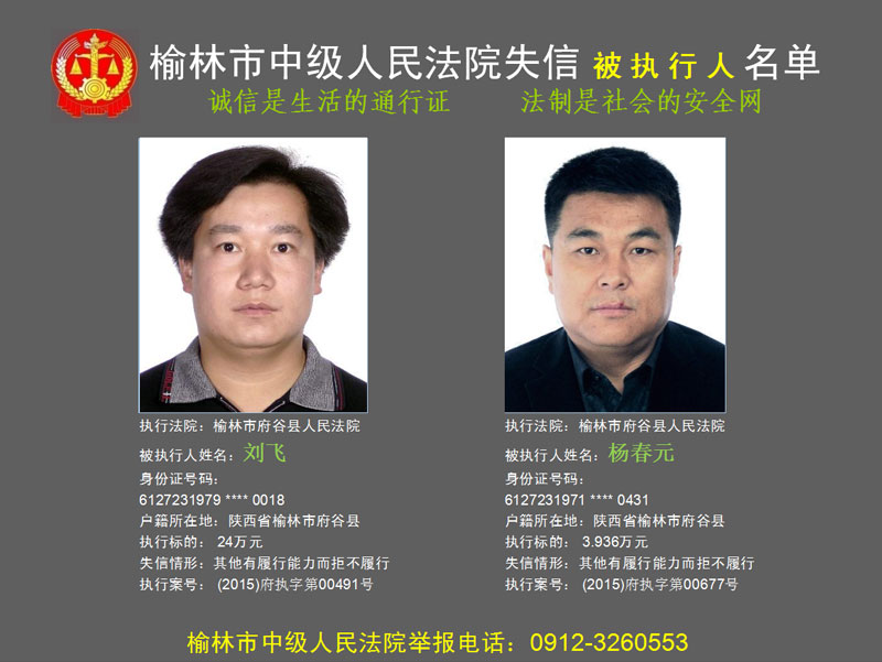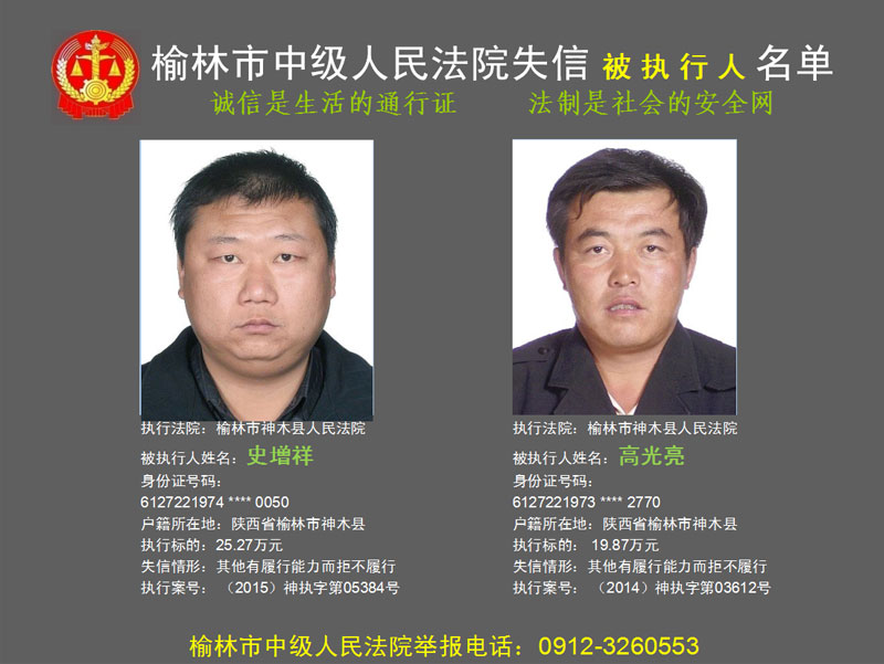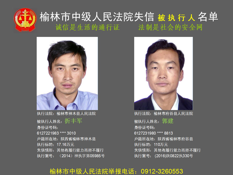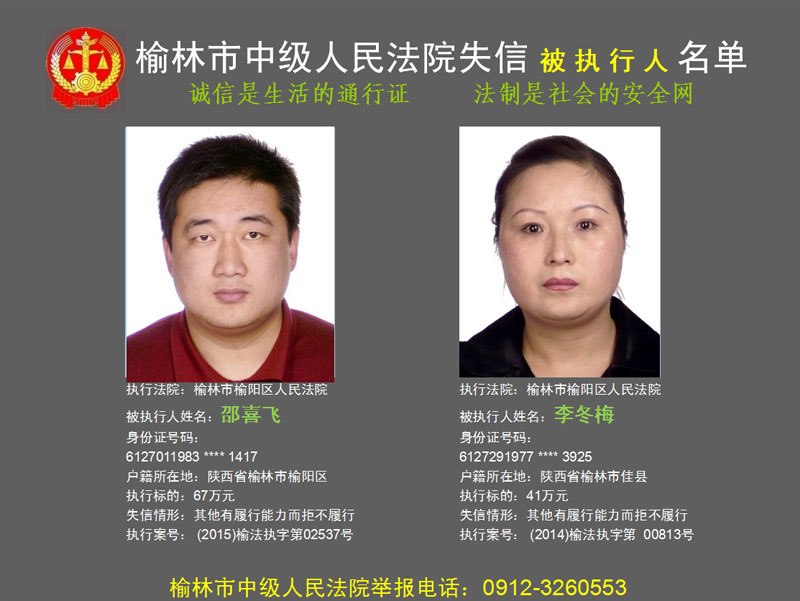 榆林市第六批失信被執(zhí)行人“黑名單”(二)80人