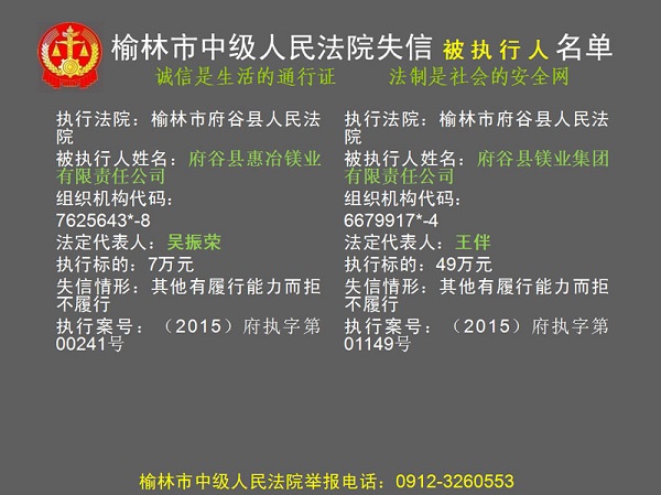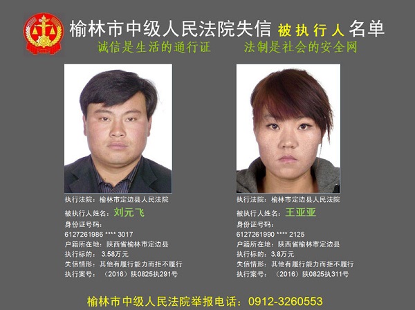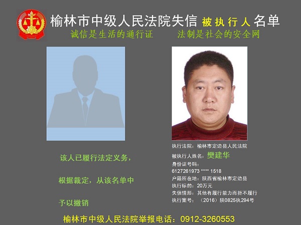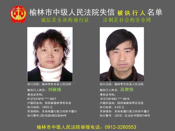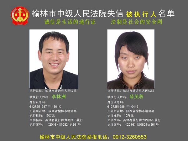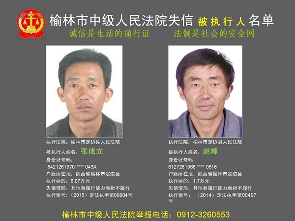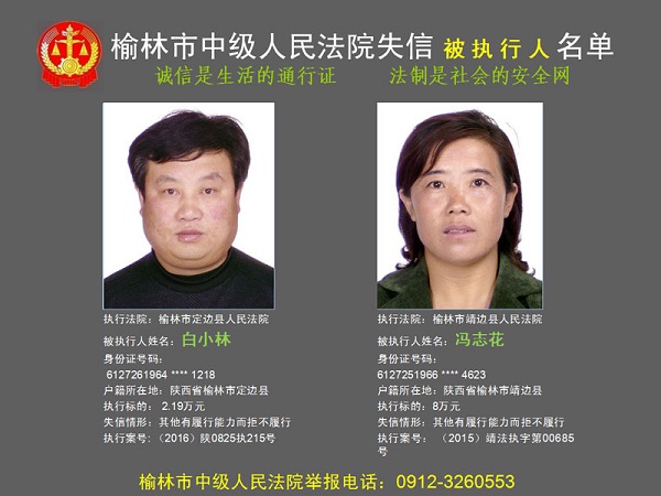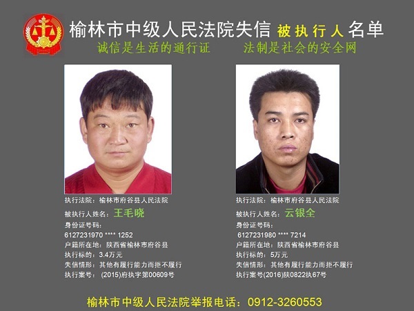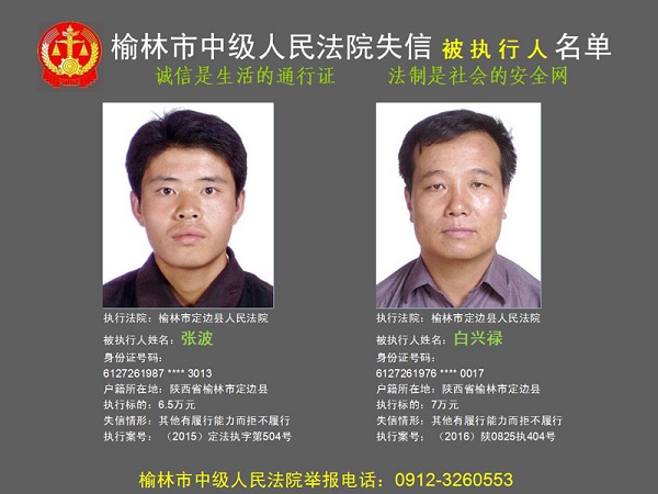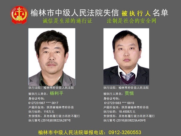 榆林市第六批失信被執(zhí)行人“黑名單”(三)80人