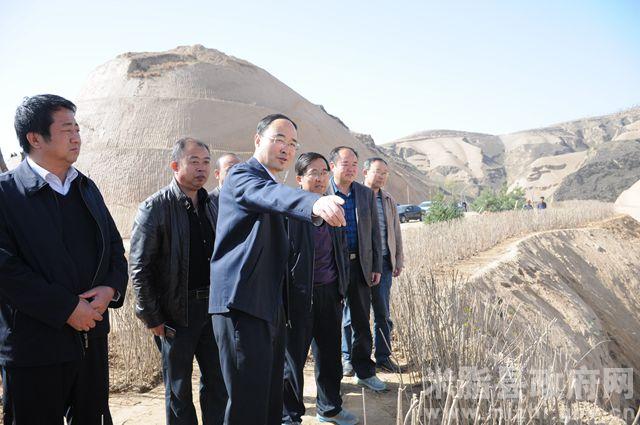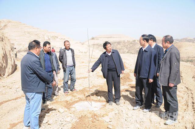 米脂縣長高寒一行檢查縣上道路綠化及山地蘋果樹栽植情況