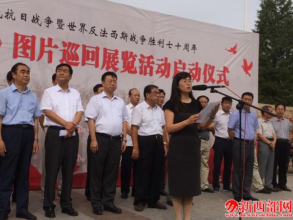 新西部網(wǎng)榆林訊(記者王永程 李強(qiáng))為了隆重紀(jì)念中國人民抗日戰(zhàn)爭暨世界反法西斯戰(zhàn)爭勝利70周年,榆林市舉辦為期兩個(gè)月的“《記憶抗戰(zhàn)》圖片巡回展覽活動(dòng)”。7月29日上午,活動(dòng)啟動(dòng)儀式在世紀(jì)廣場(chǎng)舉行,榆林市委書記胡志強(qiáng)、市人大常委會(huì)常務(wù)副主任曹世玉等出席儀式,市委常委、組織部長、宣傳部長陳寧發(fā)表講話。