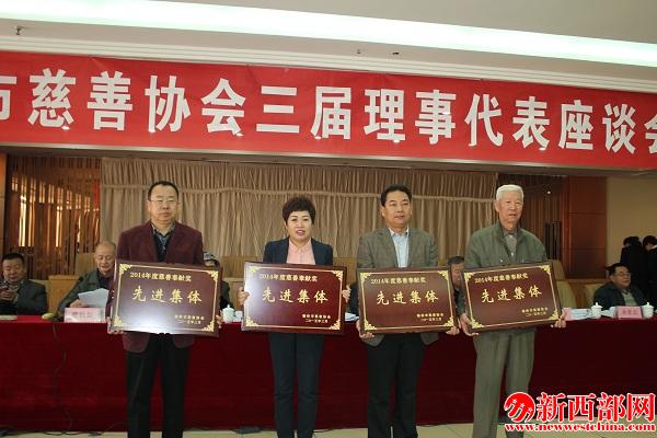新西部網(wǎng)榆林訊(記者王永程 劉建華)3月24日上午8時,榆林市慈善協(xié)會三屆理事代表座談會在精華王子酒店三樓多功能會議室舉行。會議全面總結(jié)了2014年榆林市慈善協(xié)會的整體工作,并對2015年的工作提出具體的部署要求。此外,對2014年為慈善事業(yè)做出貢獻(xiàn)的先進(jìn)集體和先進(jìn)個人進(jìn)行了表彰獎勵。