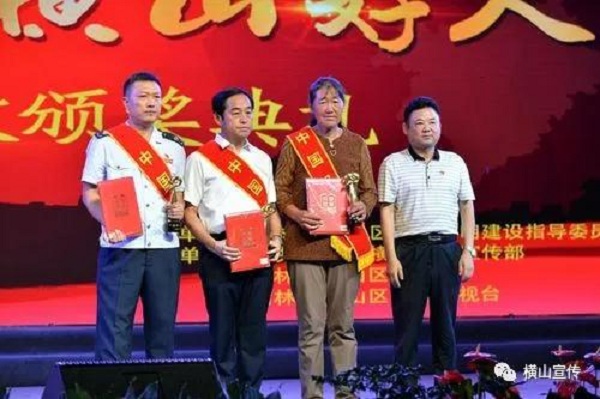 本次表彰活動(dòng)代頒發(fā)了楊增葉、胡萬彪、陳軍3人“中國(guó)好人獎(jiǎng)”。授予李東強(qiáng)等8人橫山區(qū)首屆道德模范榮譽(yù)稱號(hào),何玉濤等59人首屆“橫山好人”榮譽(yù)稱號(hào),王文山等56人首屆“橫山好人”提名獎(jiǎng),周玉明等26戶“環(huán)境衛(wèi)生示范戶”,管恩忠等19戶“產(chǎn)業(yè)帶動(dòng)示范戶”、陳風(fēng)玲等9戶“鄉(xiāng)賢、家風(fēng)家教示范戶”?;顒?dòng)現(xiàn)場(chǎng)還通過播放短片、詩朗誦、情景劇等形式,分享了“中國(guó)好人”、“橫山好人”、“道德模范”、“美麗鄉(xiāng)村·文明家園”示范戶等獲獎(jiǎng)?wù)叩母腥耸论E。