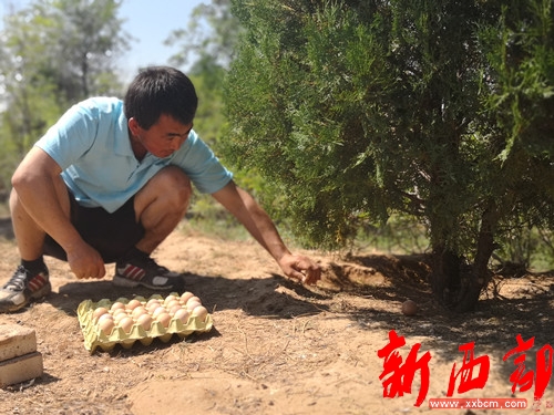 劉國榮正在收土雞蛋