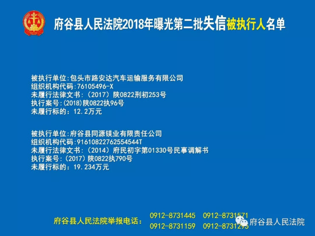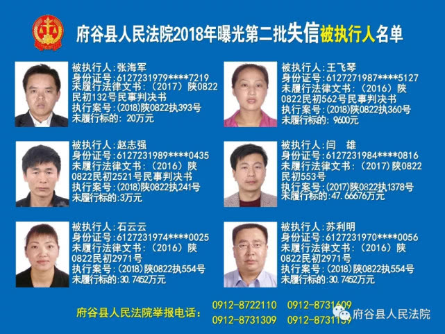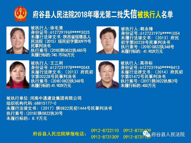 府谷縣人民法院2018年第二批失信被執(zhí)行人名單