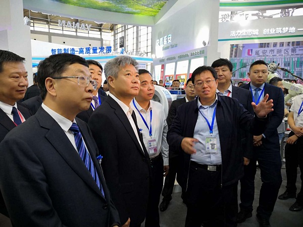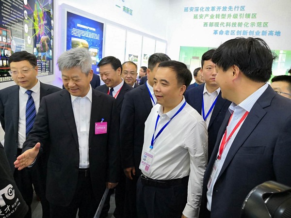 徐新榮一行先后查看了金風科技風力發(fā)電機組模型、七杰碳纖維電采暖裝置、珠海興業(yè)智能調(diào)光玻璃、韓國VR視覺嗅覺觸覺虛擬體驗、能源發(fā)儲用綜合應(yīng)用、延安制藥廠代表藥品、天才生物科技艾灸給藥組合套裝等展品,并與企業(yè)代表、技術(shù)專家交流,仔細了解產(chǎn)品特色、技術(shù)原理、應(yīng)用領(lǐng)域等。