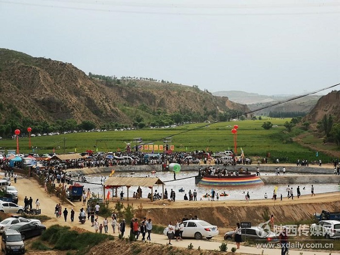 為進(jìn)一步豐富游客體驗,趙石畔村還開展了以水上樂園為主體的網(wǎng)紅搖擺橋、水上兒童游樂、沙堆玩區(qū)、大壩、二壩垂釣區(qū)等娛樂項目。除了千畝的油菜花海和娛樂項目,這里的田園小米綠豆湯、農(nóng)家接杏、手搟雜面、農(nóng)家自磨的綠豆涼粉、老店清香涼面、農(nóng)家燉羊肉、百年醇香的單二老窖也讓前來旅游的游客贊不絕口。