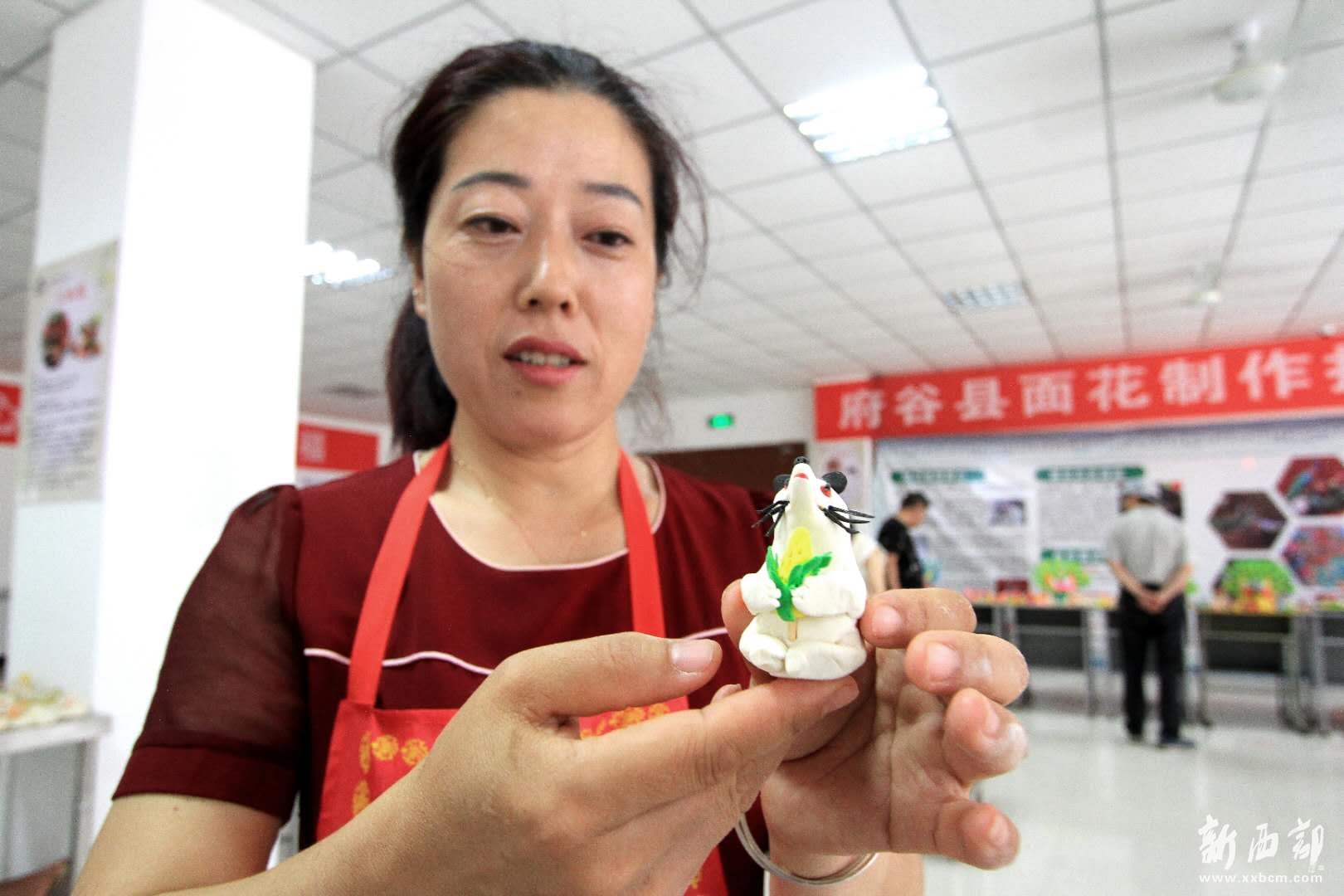走進(jìn)面花工作室,以面粉為原料,用刀、剪、針、梳等制作出的面花作品色彩鮮艷,造型各異,夸張而不失本真,飽含美好寓意?!耙郧安欢婊?,通過(guò)這次培訓(xùn),我學(xué)習(xí)到了很多知識(shí),我要將本次學(xué)到的技能融入到現(xiàn)在的面點(diǎn)生意中去,力爭(zhēng)通過(guò)面花技藝發(fā)家致富?!眲倓倕⒓油昝婊ㄖ谱骷寄芘嘤?xùn)的張秀平興奮地說(shuō)。