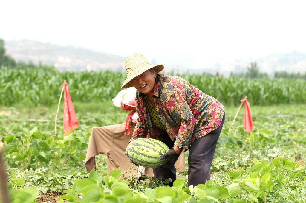 7月12日,70歲的墻頭村瓜農(nóng)藺改獅和老伴正忙著采摘著自己家的西瓜。藺改獅家的2畝西瓜雖然遭受了春季霜凍,但收成依舊不錯,他表示已經(jīng)很滿足了。