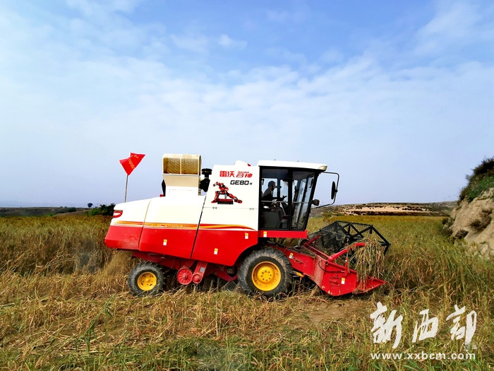 在木瓜鎮(zhèn)王家峁村糜子種植基地,放眼望去,金燦燦的一片,景致迷人。在村民王奶如的糜子地里,一臺(tái)機(jī)械化收割機(jī)正在施工作業(yè),割糜、脫粒、裝袋一氣呵成,王奶如正忙著將糜子拉回家,揚(yáng)場(chǎng)、晾曬,臉上洋溢著豐收的喜悅。村民李乖女介紹,今年她家種了40多畝糜子,畝產(chǎn)600余斤,預(yù)計(jì)今年收入可達(dá)6萬多元。