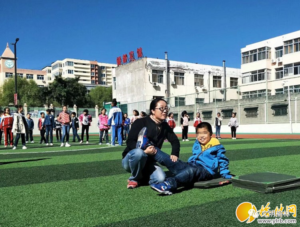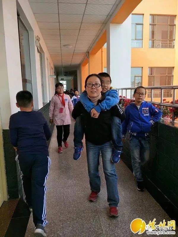六年來,張艷芬背著亮亮的身影也成了十七小校園里的一道風景線。