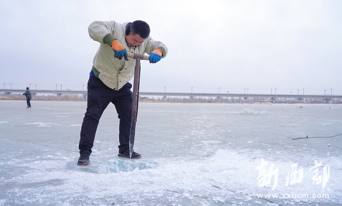 近日,筆者來(lái)到榆陽(yáng)區(qū)孟家灣鄉(xiāng)的三道河則村,數(shù)九寒天,在零下十幾度的室外溫度下,這里的魚(yú)塘已經(jīng)結(jié)起了厚厚的冰面,經(jīng)驗(yàn)豐富的捕魚(yú)人已經(jīng)在這片魚(yú)塘上鑿了眾多的冰眼,準(zhǔn)備下網(wǎng)開(kāi)始一次小型的冬捕。為了供應(yīng)節(jié)日市場(chǎng),這里幾乎天天都要進(jìn)行冬捕,魚(yú)塘里魚(yú)躍人歡,一派豐收景象。