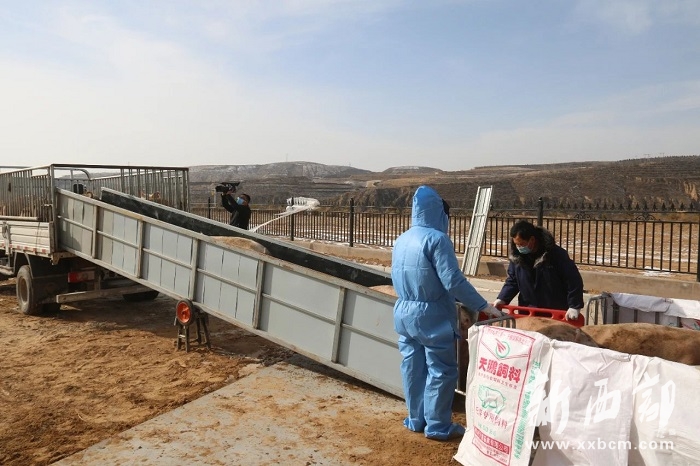 1月25日,魚河峁鎮(zhèn)柏蓋梁村的鎮(zhèn)級(jí)聯(lián)社養(yǎng)豬廠里一片忙碌。寄托著村民致富希望的1000頭生豬全部出欄。