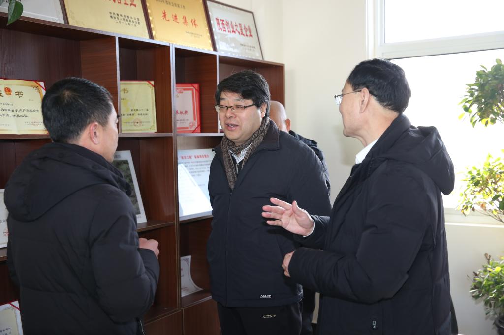 在強盛農(nóng)業(yè)科技有限公司總經(jīng)理張強陪同下,張新柱參觀了學校幫建的實驗室、標本室、培訓室、圖書室、專家工作站、文化長廊和本草園等。張強說,兩位教授的的科技服務(wù)讓公司一躍成為榆林市中藥材產(chǎn)業(yè)龍頭企業(yè)。2020年,公司光“扶貧832”一個平臺的銷售額就是原來全年銷售額的兩倍,都是兩位教授和榆林學院師生的功勞。公司在脫貧攻堅決勝之年助力當?shù)?00多貧困戶脫貧,和1000多黃芪種植戶簽訂銷售合同。兩位教授先后為綏德、吳堡縣黃芪種植戶1000多人次進行培訓,為當?shù)乜萍挤鲐氉龀隽酥匾暙I。