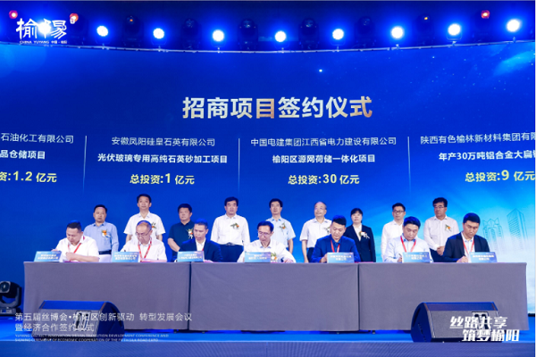 第五屆絲博會(huì)期間,5月14日,榆陽(yáng)區(qū)創(chuàng)新驅(qū)動(dòng)·轉(zhuǎn)型發(fā)展會(huì)議暨經(jīng)濟(jì)合作簽約儀式在西安舉行。會(huì)上,榆陽(yáng)區(qū)共簽約22個(gè)招商引資項(xiàng)目,引資總額194.8億元;與18家企業(yè)簽訂產(chǎn)品購(gòu)銷(xiāo)合同,簽約金額41.4億元。
