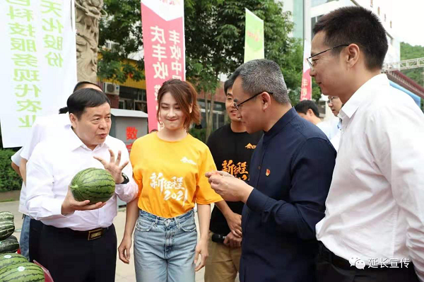 欣賞過(guò)精彩的文藝演出,曹林虎帶著主播一起品嘗地道的延長(zhǎng)美食和鮮美的有機(jī)農(nóng)特產(chǎn)品,欣賞精美的民俗文化作品和文創(chuàng)產(chǎn)品,領(lǐng)略延長(zhǎng)縣“石油故里”“瓜果之鄉(xiāng)”自然風(fēng)光。現(xiàn)場(chǎng)展臺(tái)分為瓜果蔬菜區(qū)、民俗文創(chuàng)區(qū)和美酒美食區(qū)。
