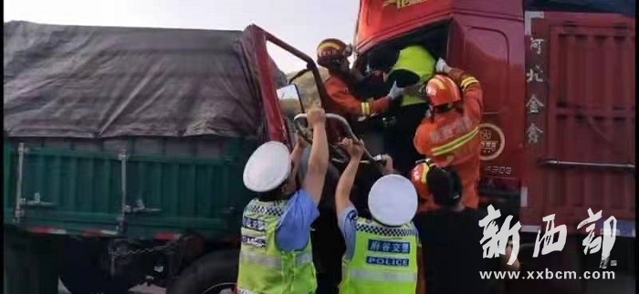 7月14日筆者從府谷縣公安局交警大隊獲悉。近日,府谷縣新民交警協(xié)同消防部門成功施救一名交通事故被困司機,讓其及時得到治療。6月25日凌晨3時20分,新民交警中隊接到指揮中心警情指令:G338國道新民鎮(zhèn)紅草溝煤檢站路段三車相撞,車上一人受傷嚴重。