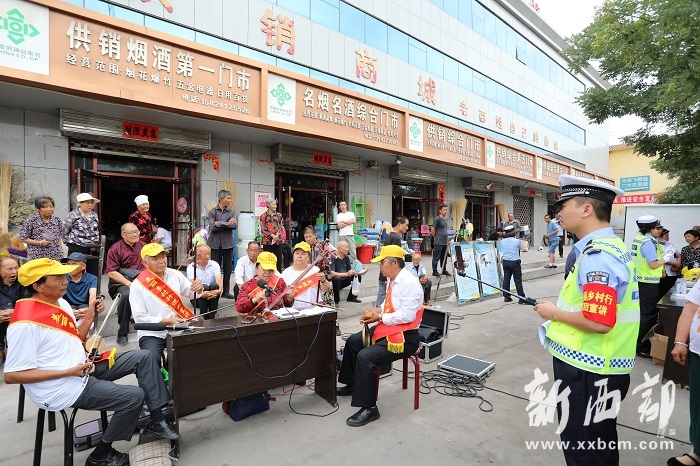 說書藝人用詼諧幽默、帶有地方濃郁特色的表演方式將安全駕駛常識、安全出行知識、交通事故案例編在唱詞里,把交通事故造成的家庭悲劇說唱給現(xiàn)場每一位群眾,讓大家進(jìn)一步認(rèn)識交通安全的重要性和遵守交通法律法規(guī)的重要意義,這種喜聞樂見的形式吸引了眾多群眾駐足觀看。民警用府谷交警官方抖音對現(xiàn)場演出進(jìn)行了直播,吸引了眾多粉絲的圍觀,擴(kuò)大了交通安全宣傳教育受眾面。
