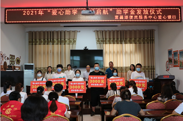 8月19日,府谷縣愛(ài)心銀行舉行“愛(ài)心助學(xué) 筑夢(mèng)起航”助學(xué)金發(fā)放儀式。來(lái)自富昌路便民服務(wù)中心的13名大學(xué)新生領(lǐng)取了資助金。