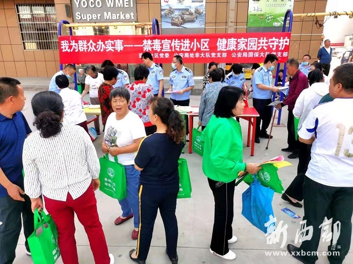 為扎實開展“我為群眾辦實事”實踐活動,進一步向轄區(qū)群眾普及禁毒知識,增強民眾識毒、防毒、拒毒意識,營造禁毒的濃厚氛圍,8月27日,府谷縣府興路便民服務中心鹽溝社區(qū)聯(lián)合府谷縣公安局處非大隊、公安局國保大隊在轄區(qū)廣場、花塢小區(qū)、恒安家園、紅旗家園等多個地方開展禁毒宣傳活動。