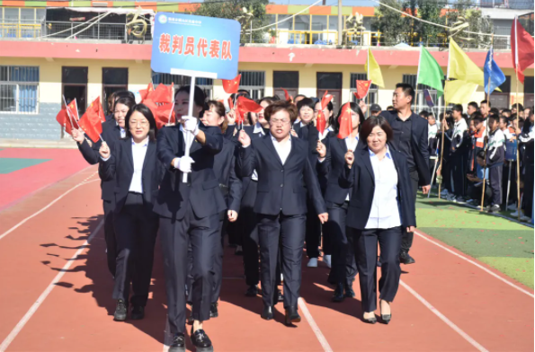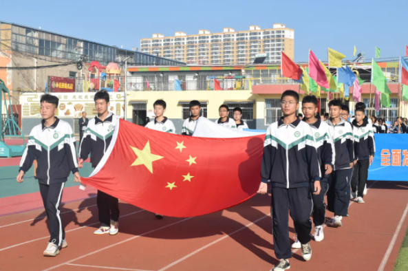 在莊嚴(yán)的升旗儀式后,副校長尚韜致開幕詞。他首先對策劃本次運(yùn)動會的體育組成員、班主任、裁判員、后勤人員表示誠摯的問候和衷心的感謝!接著他強(qiáng)調(diào)了開展此次運(yùn)動會的重要意義,舉辦此次運(yùn)動會是全面貫徹黨的教育方針、增強(qiáng)學(xué)校凝聚力、豐富學(xué)校文化生活的一項重要舉措,也是學(xué)校體育工作的一次大檢閱,學(xué)生精神面貌和綜合素質(zhì)的一次大展示。