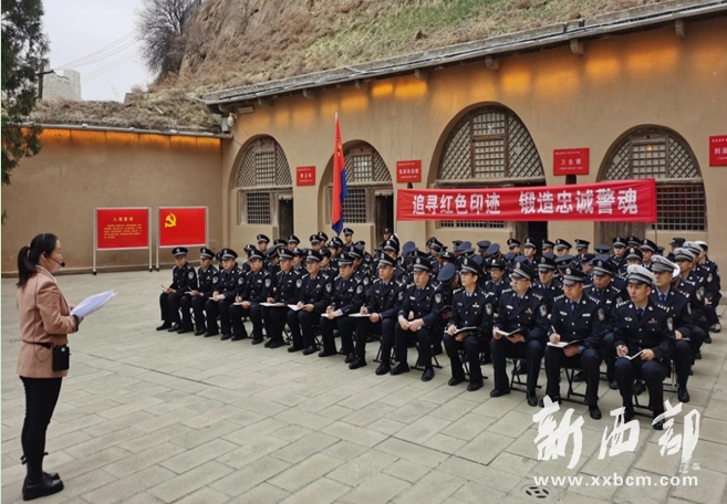 圖為:吳起縣公安局干警在毛澤東舊址開展主題黨日活動