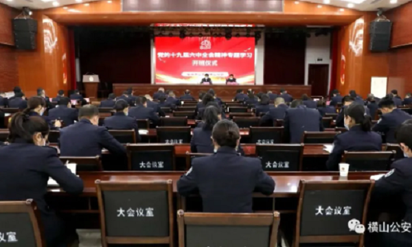 12月14日,公安橫山分局舉行黨的十九屆六中全會(huì)專(zhuān)題學(xué)習(xí)開(kāi)班儀式,區(qū)政府副區(qū)長(zhǎng)、公安分局局長(zhǎng)賀小峰出席并講話(huà),分局黨委委員、副局長(zhǎng)、政工監(jiān)督室主任董慶豐主持。全體在家局領(lǐng)導(dǎo),局機(jī)關(guān)民輔警在主會(huì)場(chǎng)參加,各派出所民輔警以視頻會(huì)議的形式在分會(huì)場(chǎng)參加。