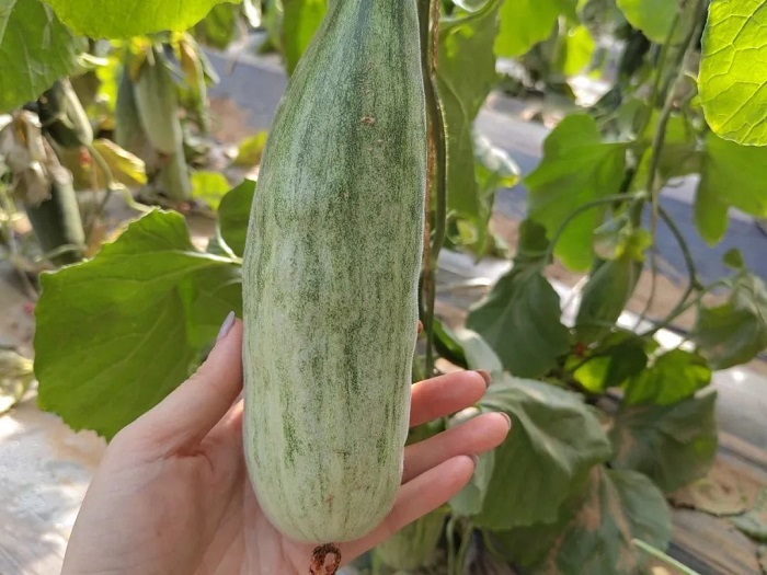 大棚內(nèi),禮品吊瓜長(zhǎng)勢(shì)喜人,蔓壯莖粗葉密,品相極好?!斑@小瓜脆甜多汁,口感好,趁著假期帶家人來(lái)嘗嘗鮮,放松放松?!辈烧獔@內(nèi),游客張女士一邊采摘一邊品嘗小瓜的甜美。