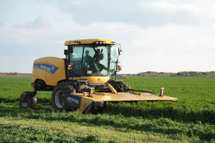 紫花苜蓿產(chǎn)量高、蛋白含量高,被譽(yù)為“牧草之王”,不僅可以促進(jìn)養(yǎng)殖業(yè)發(fā)展,同時(shí)對(duì)改善生態(tài)環(huán)境也起到了積極作用。全區(qū)廣大種植企業(yè)和農(nóng)戶抓住天氣晴好的有利時(shí)機(jī),開足農(nóng)機(jī)馬力,每天在田間作業(yè)十幾個(gè)小時(shí),力爭在苜蓿開花前全部收割完成。