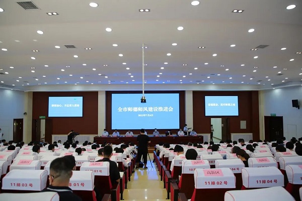 為進(jìn)一步規(guī)范教師職業(yè)行為,促進(jìn)廣大教師堅定理想信念、厚植愛國情懷、涵養(yǎng)高尚師德,做有理想信念、有道德情操、有扎實學(xué)識、有仁愛之心的“四有”好老師,7月6日上午,市教育局黨組召開全市教育系統(tǒng)師德師風(fēng)建設(shè)工作會議暨教書育人楷模、師德標(biāo)兵先進(jìn)事跡宣講活動啟動儀式。市政府副市長、市教育局黨組書記、局長沈效功出席會議并講話。市紀(jì)委監(jiān)委駐市教育局紀(jì)檢監(jiān)察組組長、市教育局黨組成員劉曉東出席會議。市教育局全體干部、縣市區(qū)教體局和市教育局直屬單位主要負(fù)責(zé)同志、榆林中心城區(qū)教師代表參加會議。會議由市教育局副局長白萬才主持。