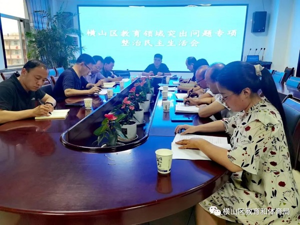 7月9日上午,橫山區(qū)教體局教育領(lǐng)域突出問題專項整治民主生活會在局機關(guān)三樓會議室召開,區(qū)紀委監(jiān)委派駐區(qū)教體局紀檢監(jiān)察組組長陳永崗參會指導,區(qū)教體局全體領(lǐng)導班子參加會議,會議由區(qū)教體局黨組書記、局長李云主持。
