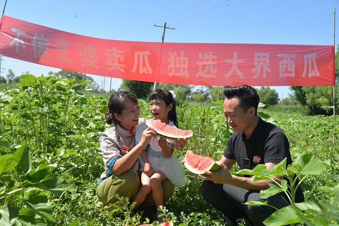 “大界村今年種植了1200多畝西瓜,畝產在1.1萬斤左右,我們這里的西瓜個大、皮薄、瓤紅、口感好,現在西瓜大面積上市,近期雨水多,中間商一再壓價,西瓜不僅價格低,還面臨爛在地里的風險。幸虧宣傳部駐村工作隊第一時間知道這件事,今天這次活動算是給我們大界村所有瓜農解決了大難題,太感謝大家了!”大界村黨支部書記高永強欣喜之情溢于言表。
