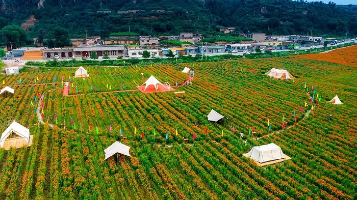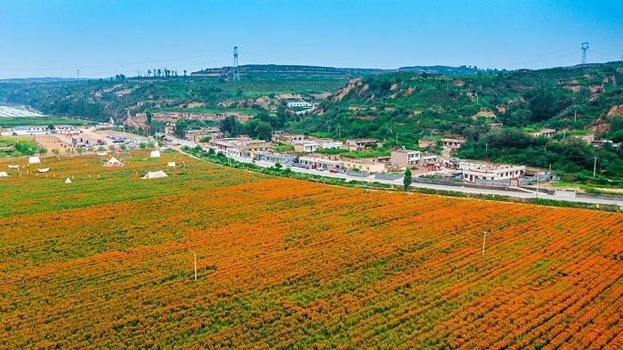 鄭家川棲心川上民宿集群的每個院落都保留了陜北這片黃土地上的特色民居,利用一孔孔傳統(tǒng)的老村莊窯洞,采用“與田園共融,與鄉(xiāng)水互動”的詩意棲居模式,面朝萬壽菊花海,依山而建,拾級而上,整體錯落有致,在保護與傳承的理念上,讓老窯洞煥發(fā)新容顏、新氣質(zhì)。