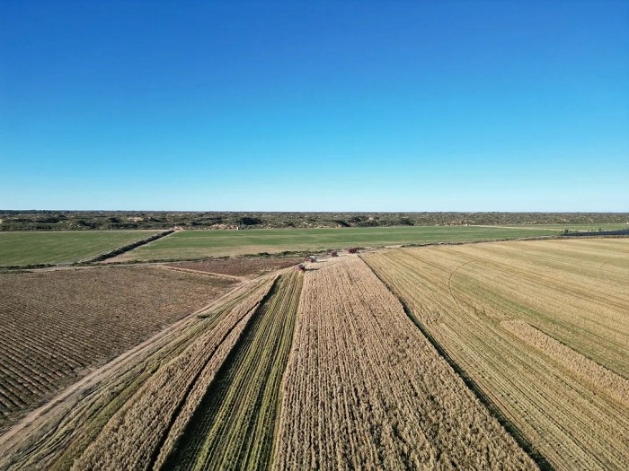 新西部網(wǎng)訊(通訊員 賈赟 張清羿)又是一年豐收季,遍地金黃谷飄香。近日,我區(qū)小紀汗鎮(zhèn)可可蓋村的2200畝谷子進入成熟收獲期。在谷子種植基地里,飽滿的谷穗壓彎了谷桿,在陽光的照射下,沉甸甸的谷穗閃著金光,微風(fēng)吹拂,谷穗輕輕搖擺,翻滾著,演奏著豐收的“樂章”。四臺大型聯(lián)合收割機穿梭其中,收割機自動進行割臺升降、行走收割、轉(zhuǎn)彎掉頭、倉滿卸糧,將地里的谷子全部收割、顆粒歸倉。