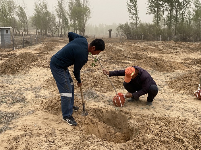 4月19日,記者來到巴拉素鎮(zhèn)大順店村看到,村民們正忙著領(lǐng)取剛剛運到的山楂樹苗,掛滿汗珠的臉上難掩喜悅的心情。原來他們要趁著種植的黃金時節(jié),把山楂樹苗種在自己家的伙場盤子里。