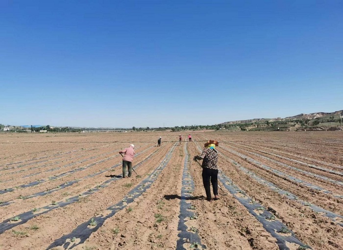 近日,記者走進古城鎮(zhèn)古城村千畝西瓜種植基地,放眼望去,行行瓜蔓綠意盎然,迎風搖曳,一道道忙碌的身影穿梭在田間地頭,人們正在給西瓜苗除草,現(xiàn)場一片繁忙景象。