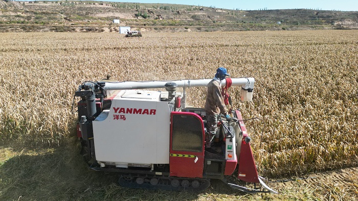紅石橋鄉(xiāng)谷子全程機械化收割