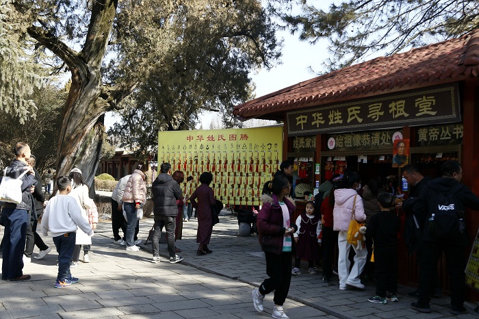 春節(jié)假日,黃帝陵景區(qū)游人如織,在黃帝手植柏、人文初祖大殿、軒轅廣場等景點前,游客們拍照打卡、燃香祭祖,祈福國泰民安、家人安康。