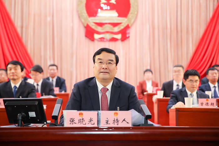 上午9時,張曉光宣布:榆林市第五屆人民代表大會第四次會議開幕。與會人員全體起立,會場響起雄壯的國歌聲,鏗鏘旋律激蕩人心。