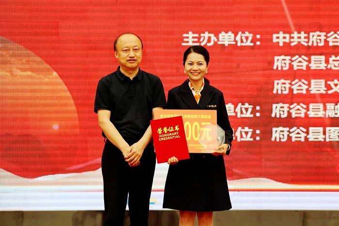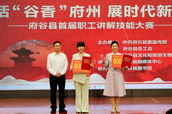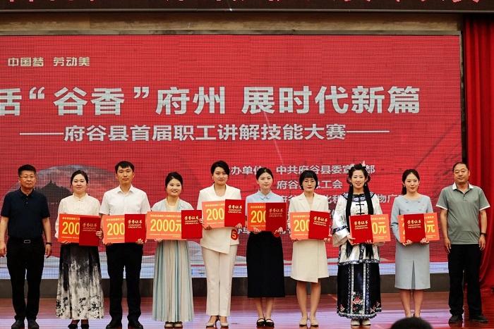 5月11日,“話‘谷香’府州 展時代新篇”府谷縣首屆職工講解技能大賽(決賽)在縣圖書館舉行??h長武靜,縣政協(xié)主席尚建林,市總工會副主席劉煜,縣委常委、宣傳部部長張臘梅,縣委常委、副縣長白艷霞,縣委常委、統(tǒng)戰(zhàn)部部長、縣總工會主席郝慧仙,縣人大常委會副主任高勇,縣政協(xié)副主席蘇曉華觀看比賽并為獲獎選手頒獎。