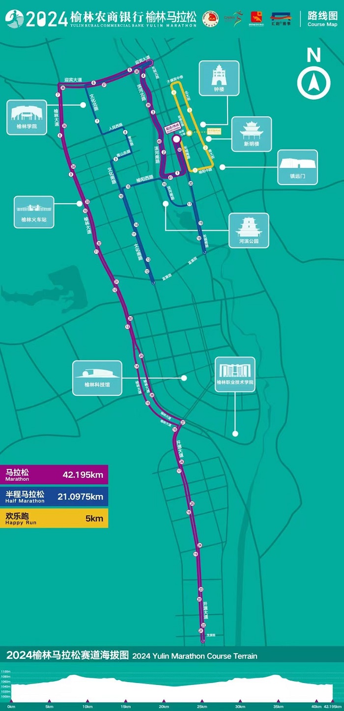 為增加運動員的參賽體驗感,馬拉松項目賽道設(shè)立于城區(qū)內(nèi)的榆林大道、開源大道,賽道寬闊平坦,有利于參賽選手體能的發(fā)揮,同時減少賽事的保障和醫(yī)療救援的難度;半程馬拉松項目賽道設(shè)立途經(jīng)榆林學(xué)院、榆林市政府、河濱公園、圣都樂園;歡樂跑項目賽道途經(jīng)榆林老街、夫子廟等富具城市風(fēng)情的街景,賽道的選擇讓賽事與絲路駝城充分融合,并于賽后向所有參賽運動員發(fā)放有地方特色小吃,還向參賽人員提供免費游覽紅石峽、鎮(zhèn)北臺和陜北民歌博物館的福利,讓運動員體驗的不僅僅是一次賽事,還能夠通過一場比賽來領(lǐng)略古城榆林的熱情與歷史的濃厚。