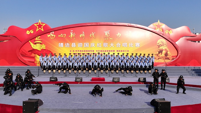 9月27日,由中共靖邊縣委宣傳部、中共靖邊縣委組織部、靖邊縣總工會主辦,靖邊縣文化和旅游文物廣電局承辦的“唱響新時代·聚力譜新篇”靖邊縣迎國慶紅歌大合唱比賽在城市運動公園舉行。